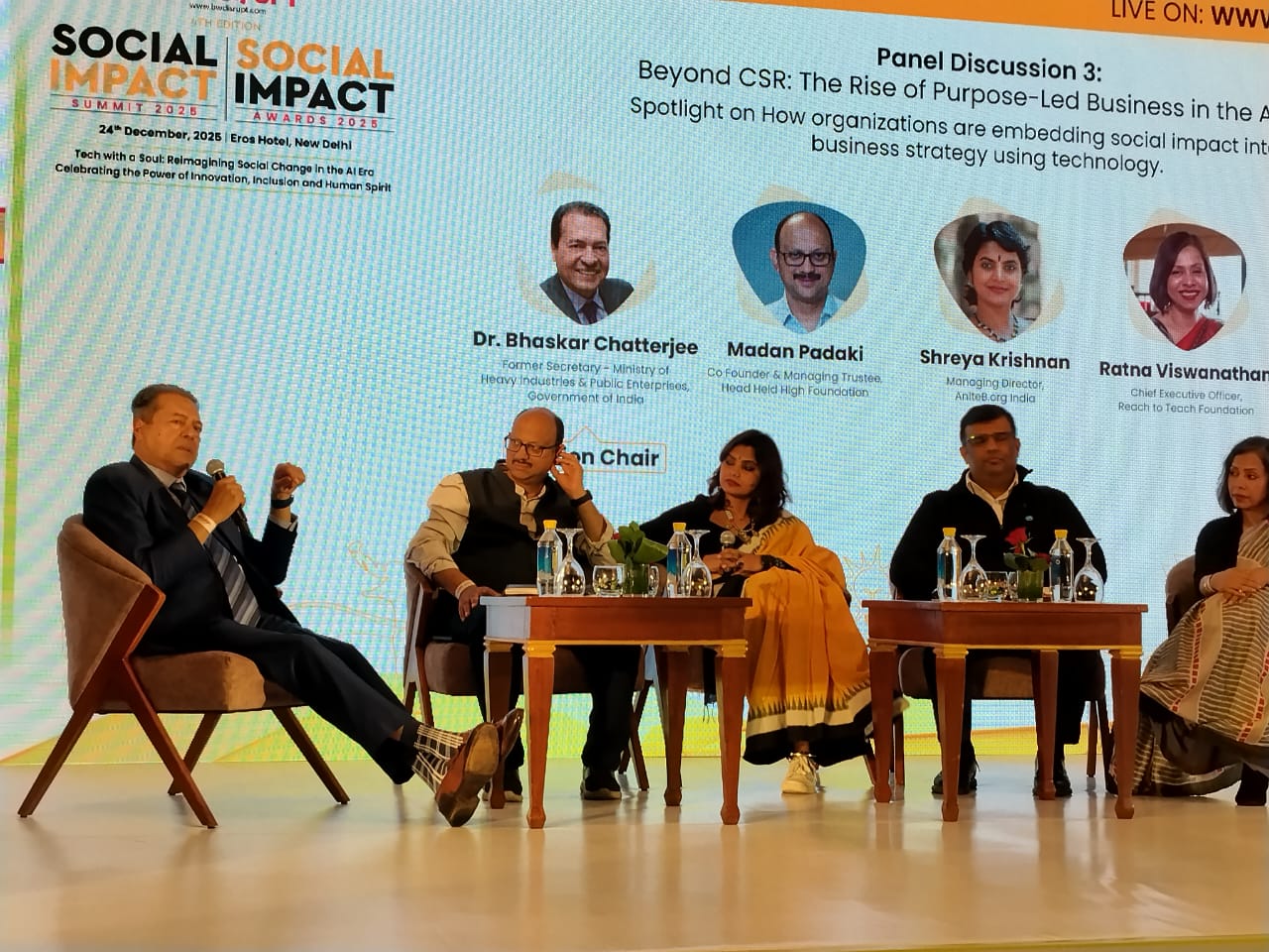 The Panel discussion led by Dr. Chatterjee explored the shift beyond traditional CSR towards purpose-led business models. Leaders from government, corporates, and civil society discussed how technology, AI, and innovation are embedding social impact into core business strategy for sustainable, scalable change.